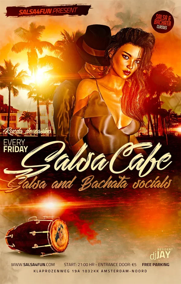 Every Friday, salsa and Bachata lovers from all over the Netherlands come to our salsa café. Also our fellow dance teachers, Latin artists, show teams and Dutch celebrities.